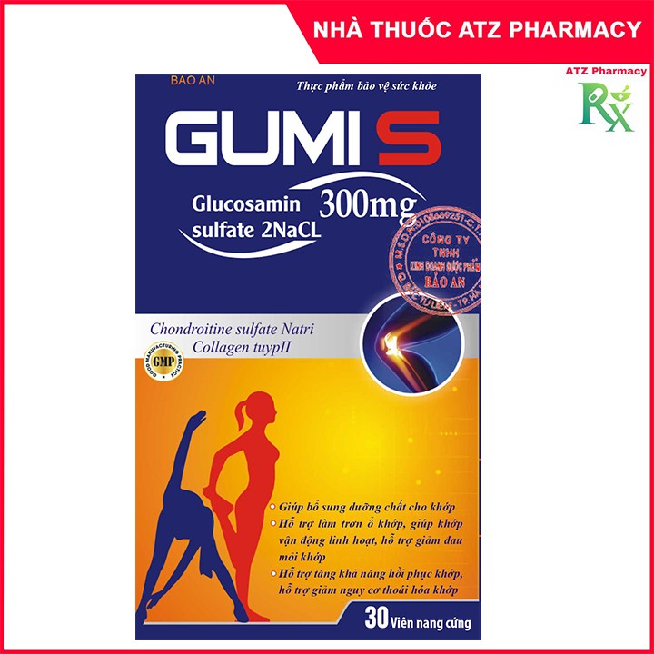 Viên Uống GUMI S (Hộp 30 viên) - hỗ trợ làm trơn ổ khớp, giảm đau mỏi khớp, giúp khớp vận động linh hoạt - ATZ PHARMACY