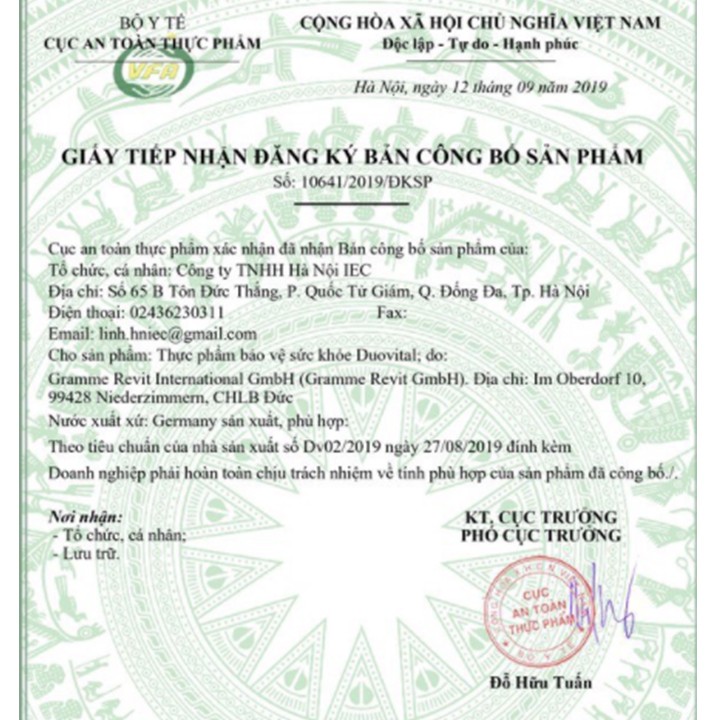 Quy Cách Duo Vital:1 Hộp 2 Chai x 500mlThành Phần Duo Vital: Thành phần100 ml chứa30 mlCalori820 kJ/195 kcal246 kJ/58,5 kcalProtein0,0 g0, 5.300.000đ