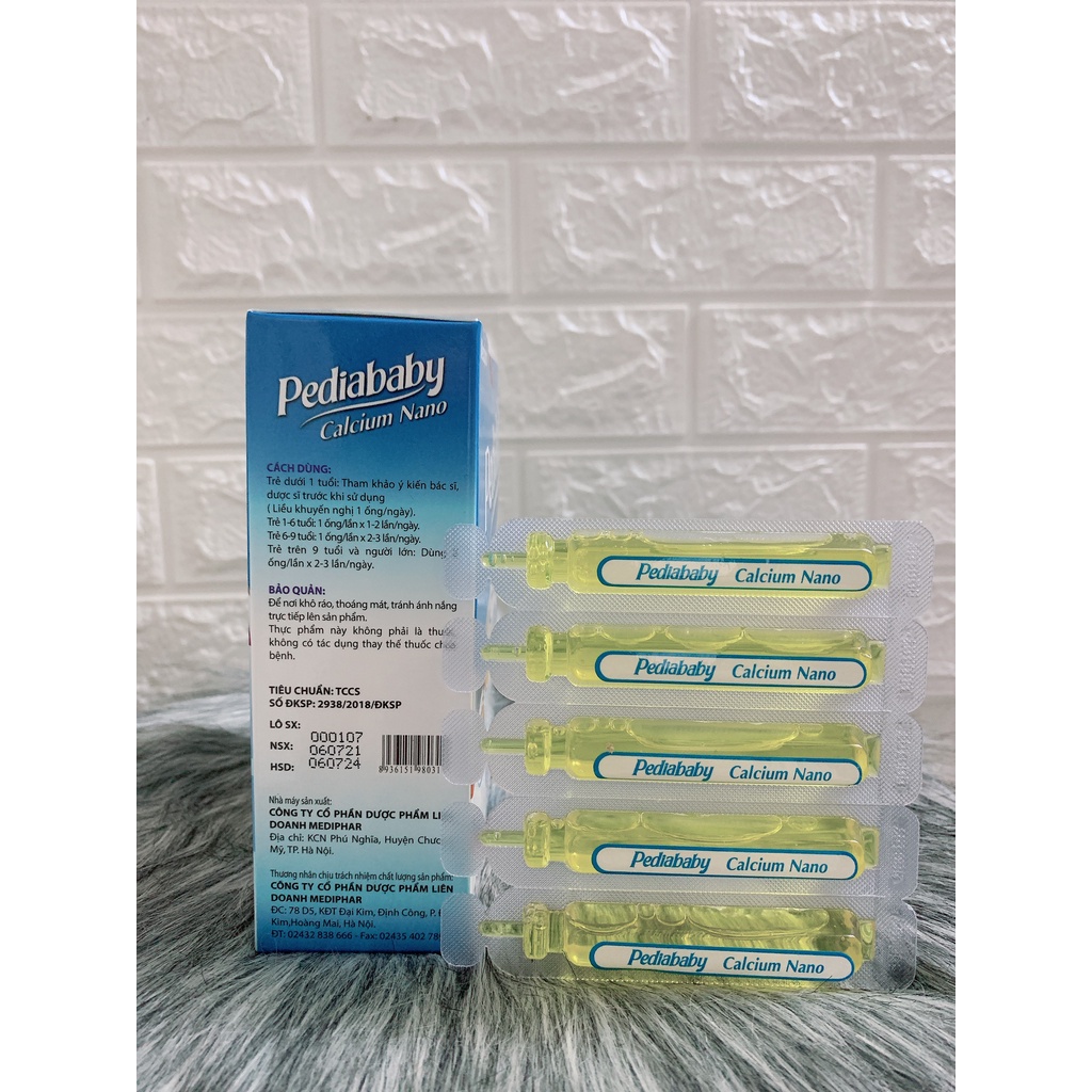 CHÍNH HÃNG Pediababy Calcium nano bổ sung canxi phát triển chiều cao Hộp 20 ống