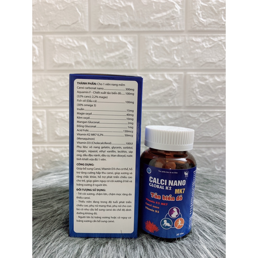 Viên bổ sung Canxi Calci Nano TẢO BIỂN ĐỎ lọ 30 viên