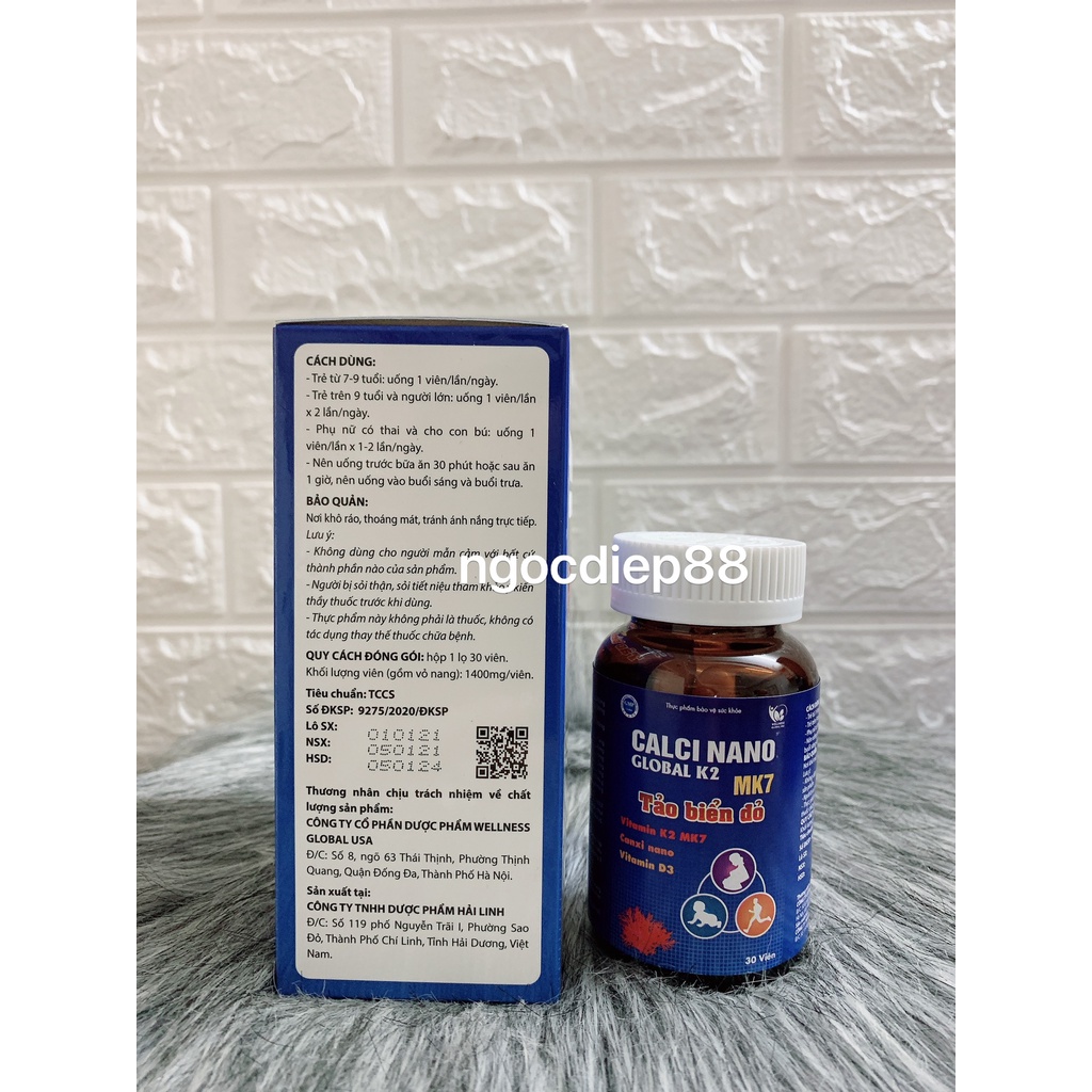 Viên bổ sung Canxi Calci Nano TẢO BIỂN ĐỎ lọ 30 vi...