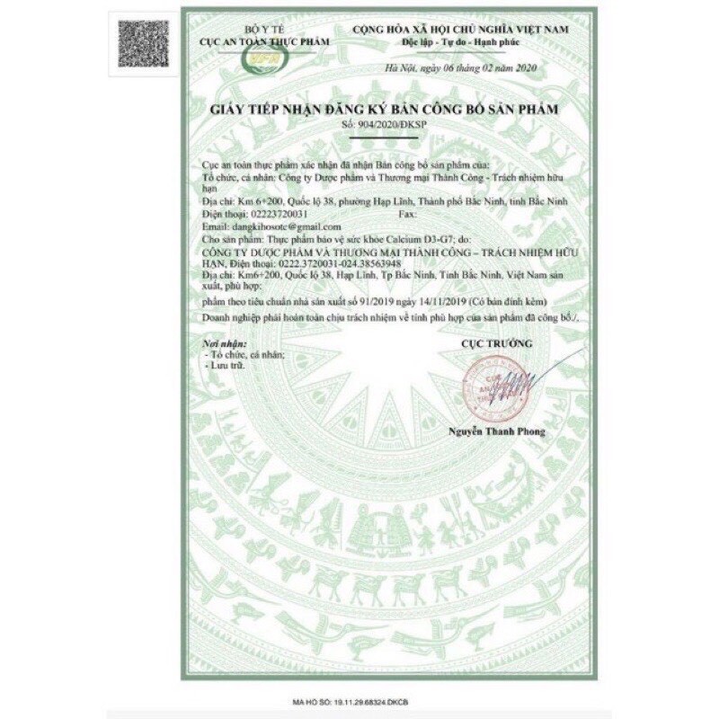 CHÍNH HÃNG Viên bổ sung Canxi Calcium D3-G7