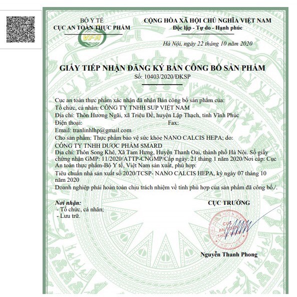 Sản phẩm được Bộ Y Tế cấp phép sản xuấtNhà máy sản xuất đạt chuẩn GMP Bộ Y Tế