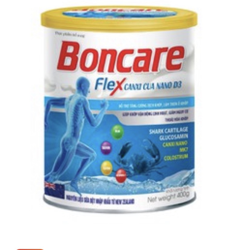 Sữa Bột Boncare Flex Canxi Cua Nano D3 với thành phần sụn vi cá mập, glucosamine, canxi nano MK7 Hỗ trợ tăng cường dịch khớp, làm trơn ổ khớp, giảm đau nhức xương khớp, giúp khớp vận động linh hoạt- hộp 400g