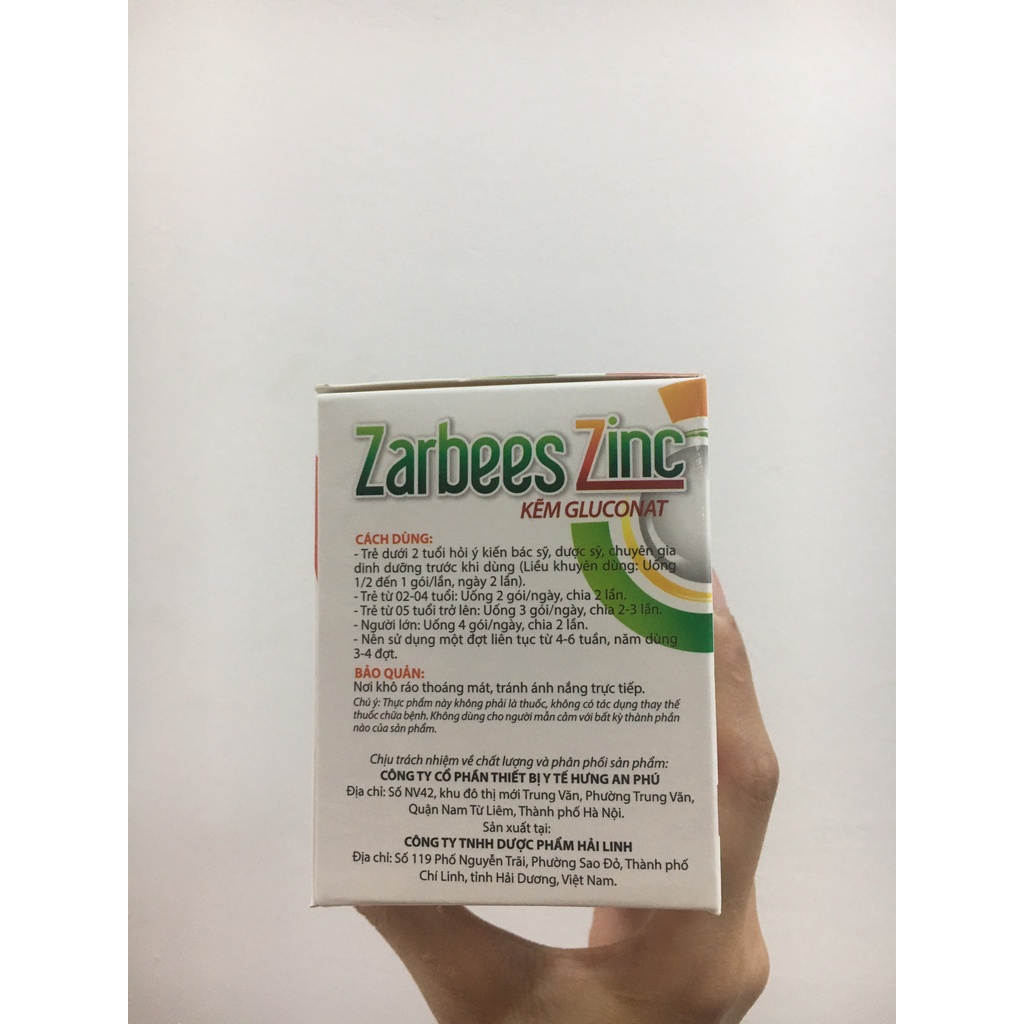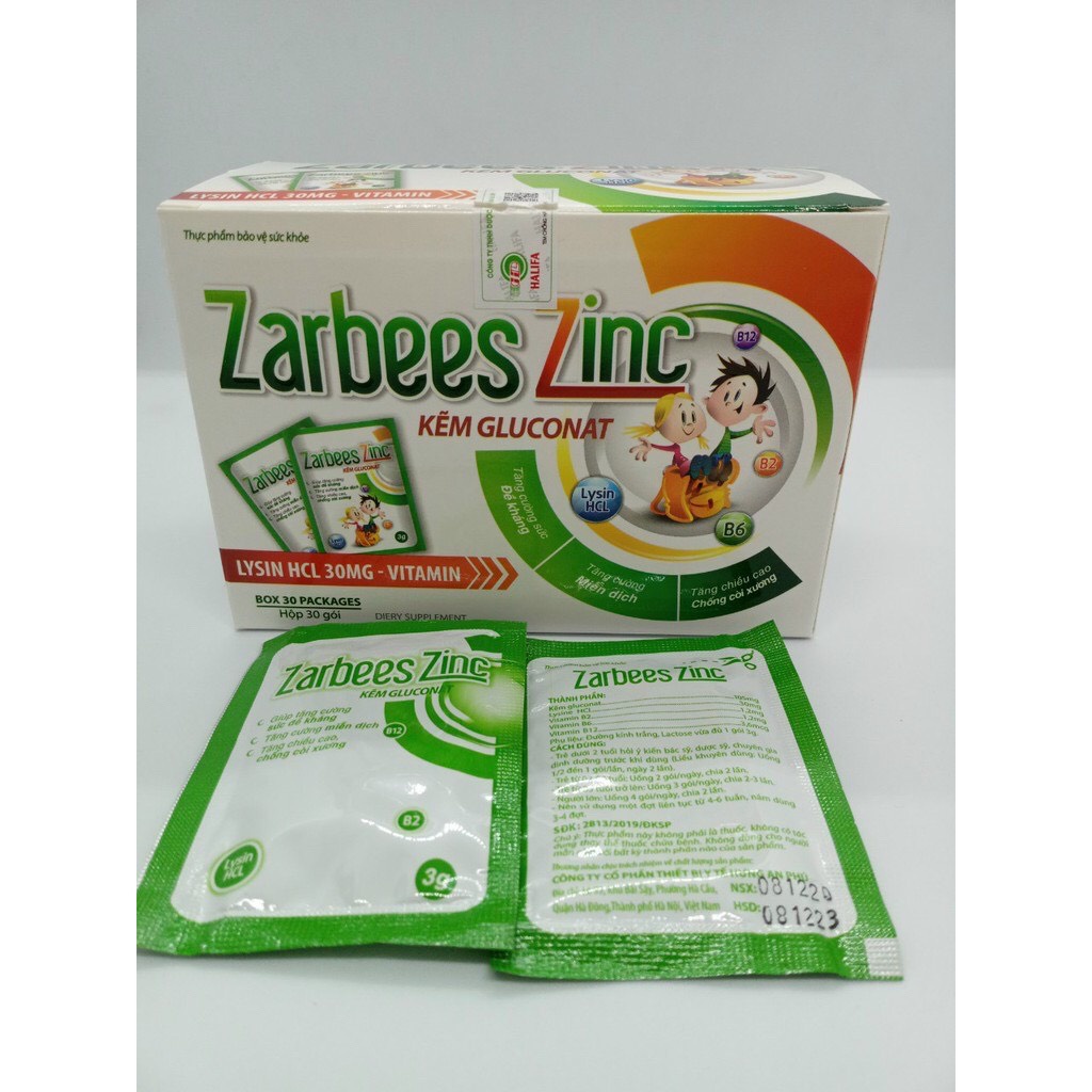 Zarbees Zinc bổ sung kẽm hỗ trợ ăn ngon tăng cường sức khỏe đề kháng miễn dịch chống còi xương Hộp 30 gói