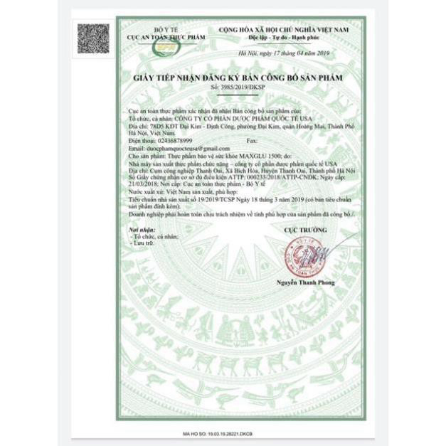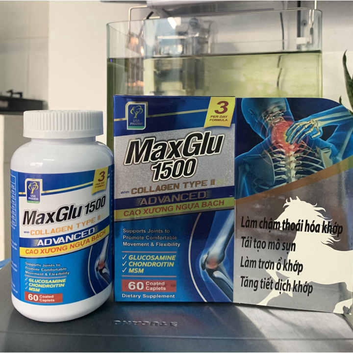 (chính hãng) (Chính Hãng) Maxglu 1500 giúp phục hồi tái tạo mô sụn khớp tăng tiết dịch lọ 60 viên, sản phẩm chất lượng, đảm bảo an toàn sức khỏe người sử dụng, cam kết hàng giống hình