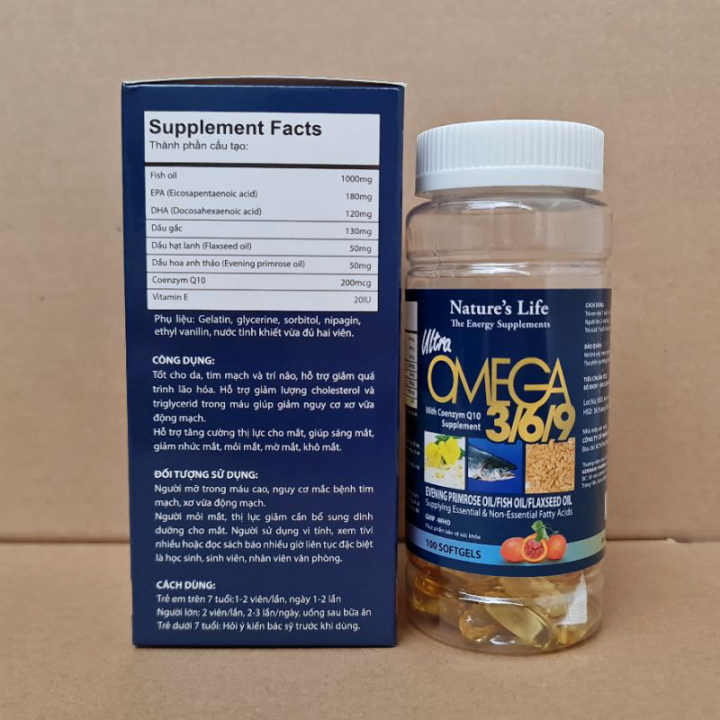 viên dầu cá 369 Hộp 100 viên Làm giảm mỏi mắt, khô mắt