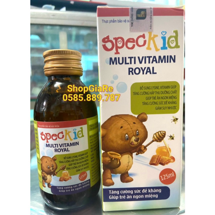 Sáng phẩm không phải là thuc khôg thể thay thế cho thuc chữa bệt giúp bé ăn ngon ngủ tốtTHÀNH PHẦN:Lysin: ........................................ Mật ong:....................................... Taurin:.......................................... Cao xương động vật: .................... Calci nano: ................................. DHA:............................................. Beta glucan:..................................... Vitamin B1:...................................... Vitamin B2: ...................................... Vitamin B5:.................................... Vitamin PP:.................................... Thành phần khác: đường, nước tinh khiết vừa đủ 100mlCÔNG DỤNG: Speckid ăn ngon giúp bé ăn ngon ngủ tốt, tăng cường sức đề kháng bé thông minh, hỗ trợ bé kén ăn, ngủ khôngngon giấchán aen, mệt mỏi, ốm yếu, ăn không ngon, thường xuyên ốm vặt khi thay đổi thời tiết Tăng cường sức khỏe, tang cường miễn dịchBổ sung Acid amin (Lysin, Taurin), khoáng chất và các vitamin cần thiết giúp kích thích ăn ngon, tằn cường hấp thu dưỡng chất, đặc biệt ở trẻ còi xương, suy dinh dưỡng, biếng ăn, trẻ hay ốm vặt, gầy yếu, giúp tăng cường phát triển về trí tuệ và thể chất ở trẻ em.ĐỐI TƯỢNG SỬ DỤNG:Trẻ em suy dinh dưỡng, biếng ăn, chậm lớn, còi xườn, gầy yếu, kém hấp thu. Trẻ em đang trong giai đoạn phát triển về chiều cao, chậm mọc răng.CÁCH DÙNG:Trẻ dưới 1 tuổi: tham khảo ý kiến dược sĩ, bác sĩ.Trẻ 1 - 6 tuổi: 1 ống/lần, 1 - 2 lần/ngàyTrẻ 6 - 9 tuổi: 1 ống/lần, 2 - 3 lần/ngàyTrẻ trên 9 tuổi và người lớn : 2 ống/lần, ngày 2 - 3 lần.