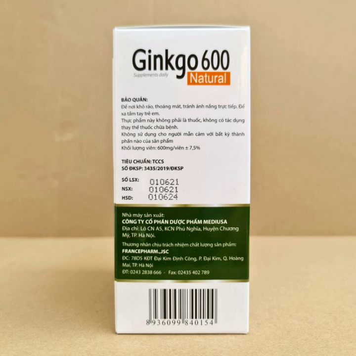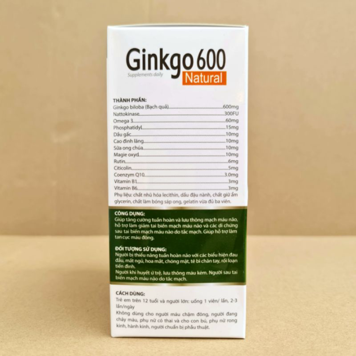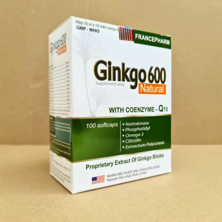 Viên uống Ginkgo 600 viên uống hoạt huyết dưỡng não hộp 100 viên