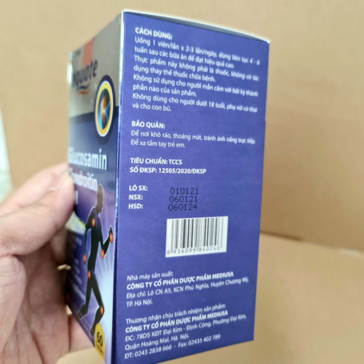 Viên uống Glucosamin Chondroitin MSM Giúp xương chắc khớp khỏe, ngăn ngừa thoái hóa khớp, tái tạo mô sụn lọ 60v
