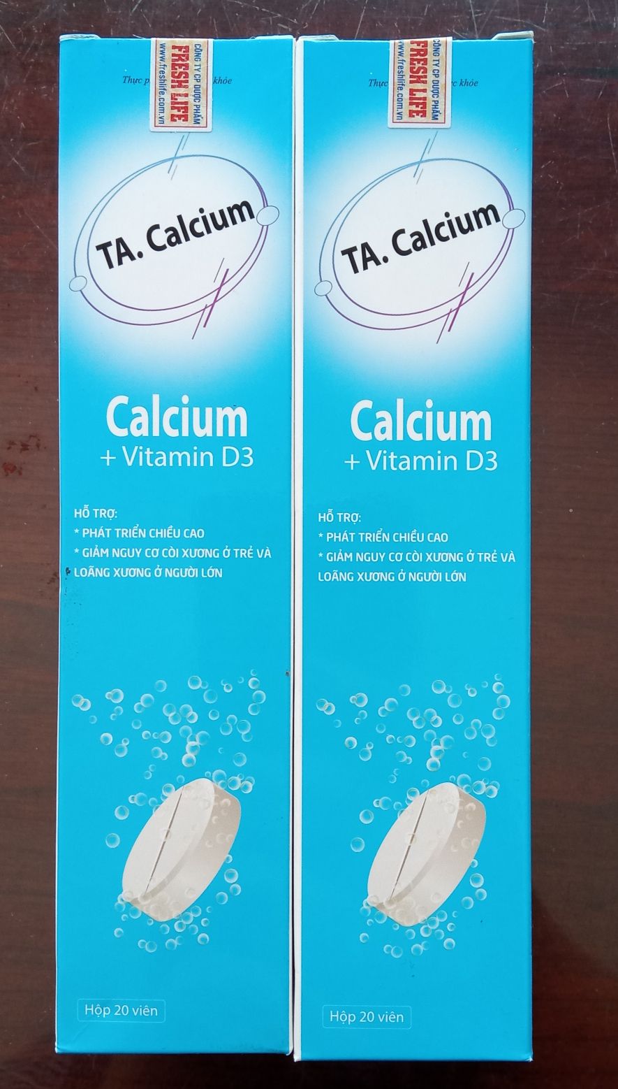 Calci sủi TA.Calcium vitamin D3 tuýp 20 viên