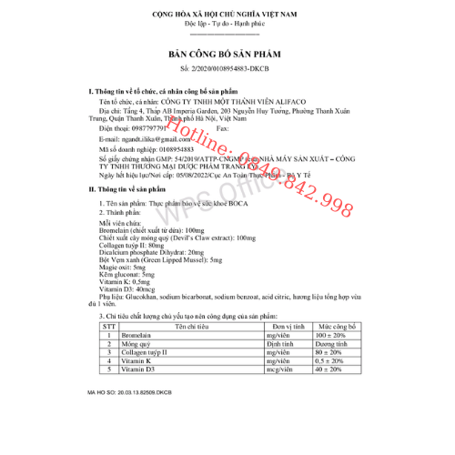 VIÊN SỦI XƯƠNG KHỚP BOCA CHÍNH HÃNGSẢN PHẨM ĐƯỢC PHÂN PHỐI TRỰC TIẾP TỪ CÔNG TY TNHH MTV ALIFACO