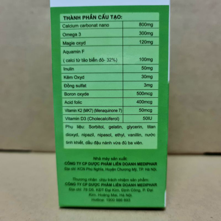 Viên uống LIQUID CALCIUM NANO K2 giúp phát triển xương, tăng chiều cao, giảm loãng xương còi xương hộp 30 viên nang