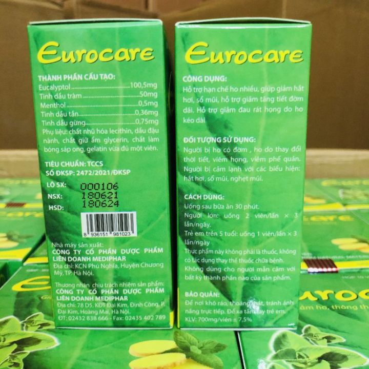 Viên uống Eurocare giúp Giảm ho, thông thoáng mũi họng - Hộp 100 viên