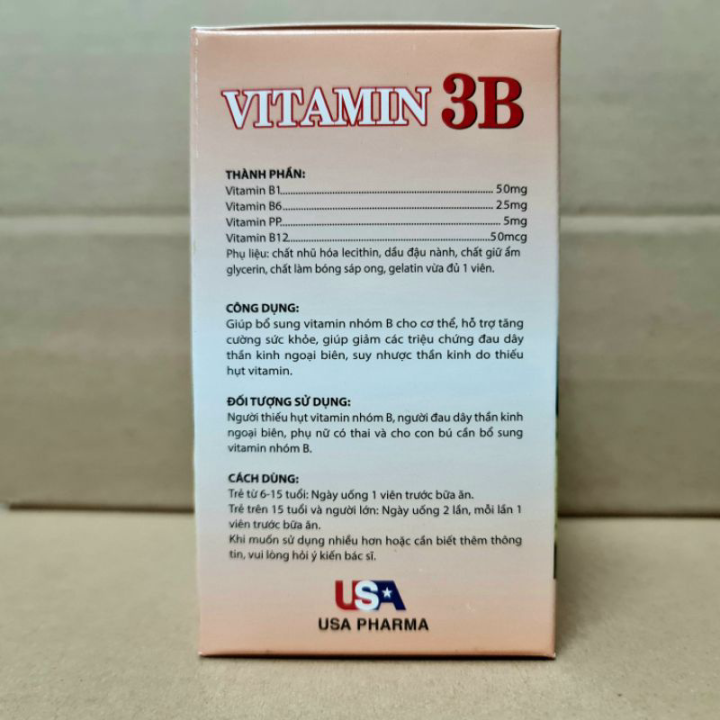 Viên uống Vitamin 3B Giúp bổ sung và dự phòng thiếu hụt vitamin B1, B6, B12 cho cơ thể hộp 100 viên