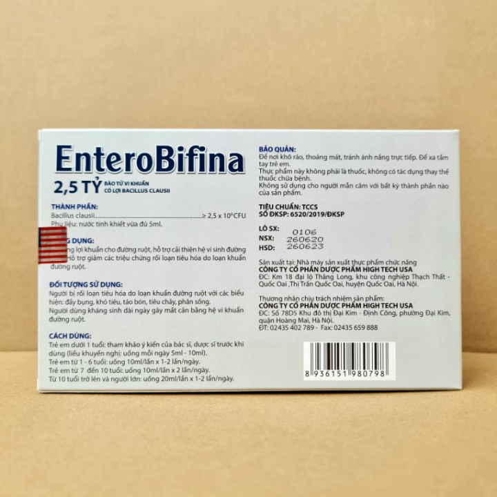 Men vi sinh EnteroBifina dạng nước giúp cân bằng hệ vi sinh đường ruột - Hộp 20 ống