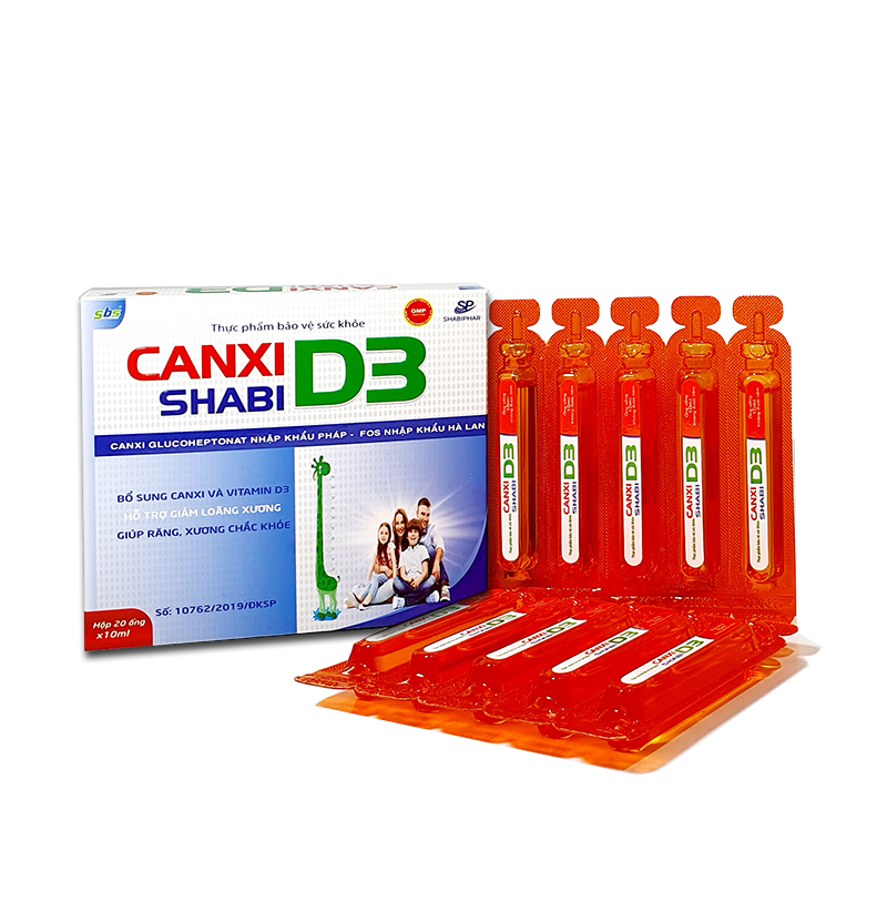 TPBVSK Canxi Shabi D3- Bổ sung canxi và vitamin D3 , hỗ trợ giảm loãng xương, giúp răng, xương chắc khỏe- Hộp 20 ống