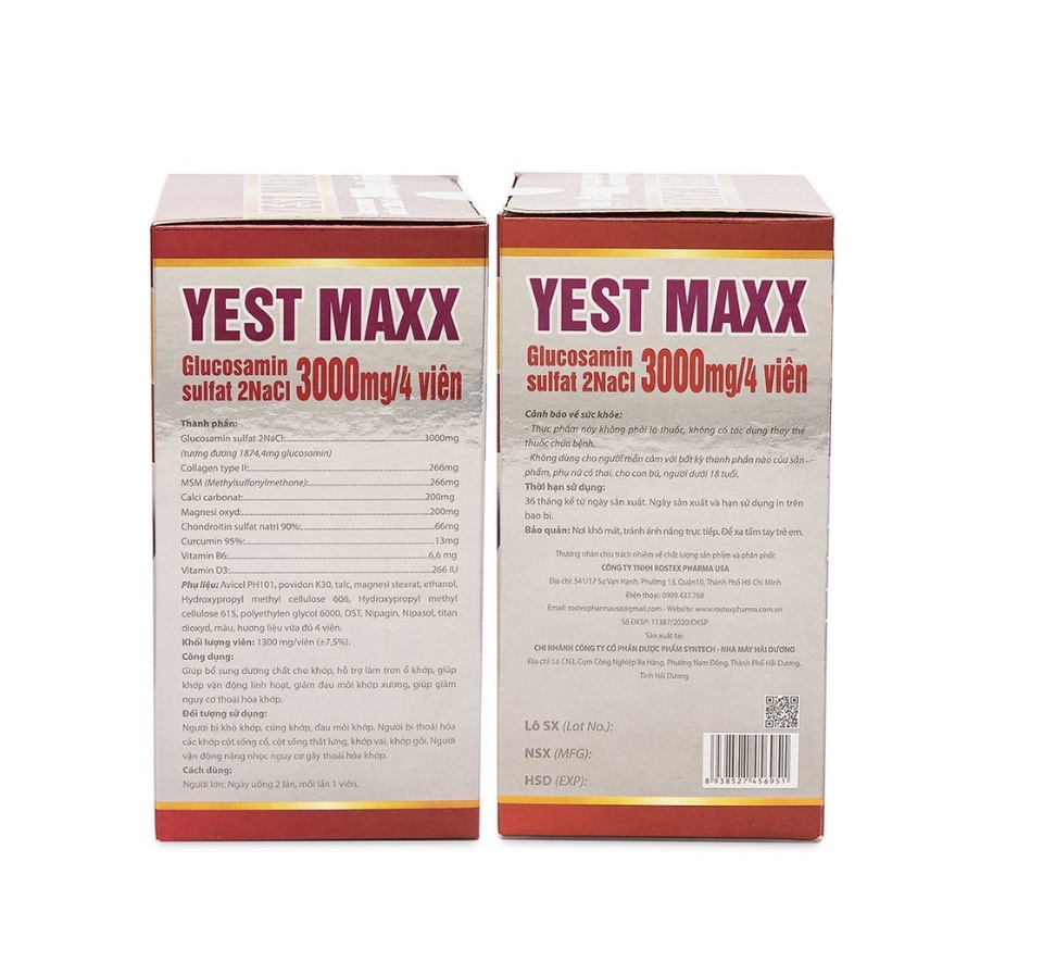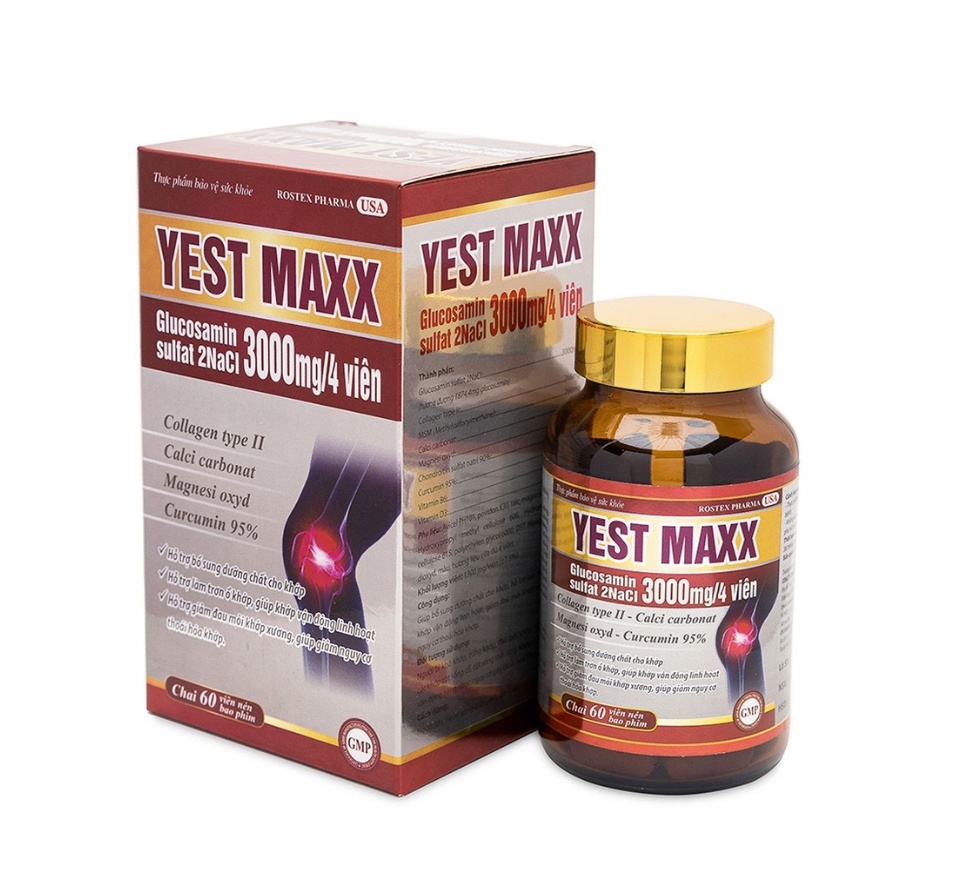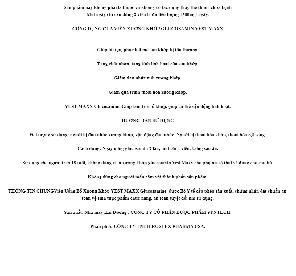 Viên uống bổ xương khớp Glucosamin 3000mg Yest Maxx giảm đau nhức mỏi xương khớp, giảm thoái hóa khớp lọ 60V chính hãng sản phẩm có nguồn gốc xuất xứ rõ ràng, đảm bảo chất lượng