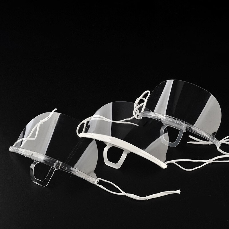 Transparent mask is the plastic face mask for food and spa and beauty services. It useful and non toxic, and has good looks and lightweight, easy to wear, and can be repeatedly used after being cleaned and disinfected at any time.