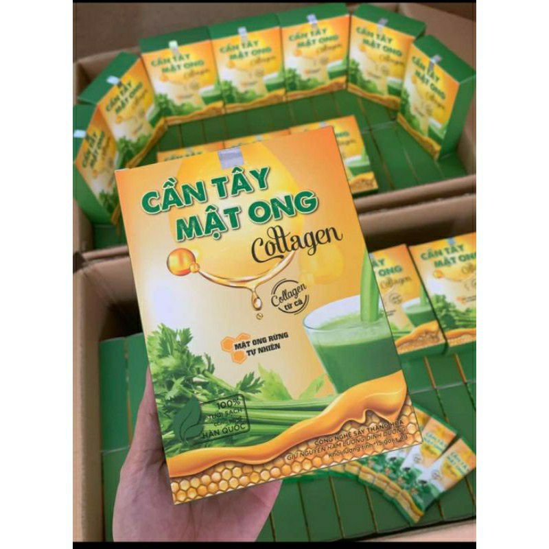 [Chính hãng] Cần tây mật ong giảm cân, mẫu mới thêm collagenCHI TIẾT SẢN PHẨM“Sản phẩm này không phải là thuốc và không có tác dụng thay thế thuốc chữa bệnh"LƯU Ý: KHÁCH ĐC FREESHIP KHI MUA HÀNG & ĐC XEM HÀNG TRC KHI NHẬN HÀNGHộp 50g ( hoặc 14 gói nhỏ) tùy theo đợt hàng ah ( KO BAO GỒM BÌNH)Bột cần tây giúp người dùng có một cơ thể khỏe mạnh, hạn chế đáng kể các bệnh về tim mạch, cao huyết áp, đường ruột, chống lão hóa da,chứng tiểu buốt, chống viêm khớp, tốt cho gan và mắt, giảm cân hiệu quả,... Cần tây là một loại rau xanh dùng nhiều trong các món ăn của người Việt, vị hơi chát khi nếm và có mùi hắc khá khó ngửi. Nhưng đằng sau vị chát đó là cả một hàm lượng lớn chất xơ lên đến 1.6g. Bên cạnh đó là các dưỡng chất khác như: Vitamin A, B1, 2, 3, vitamin C, vitamin K, photpho, magie, kẽm, canxi, kali, carbohydrate, protein, axit folic, chất béo bão hòa và cholesterol thấp,... Tất cả đều là những dưỡng chất tốt cho cơ thể.Cách Dùng :Dùng 3 lần/1 ngày mỗi lần uống 1 muỗng Cần Tây Mật OngSản phẩm này không phải là thuốc và không có tác dụng thay thế thuốcMuốn đẹp phải từ từ mỗi ngày 1 ít chứ không dùng cái đẹp liền được nha các nàng ơi.Mình lười ăn rau thì mình dùng nước ép.. Cần tay mật ong mỗi ngày 1 ly hiệu quả hơn 20 bó rau Cần Giúp giữ dáng thon gọn, tiêu mỡ, giảm cân an toàn.Thanh lọc giải độc cơ thể kích thích uống nước cho người lười uống nướcTrj chứng mất ngủ, ngủ không sâu giấc.Giúp an thần, giảm căng thẳng, stress.Nuôi dưỡng làn da căng mượt, tươi trẻ.Hỗ trợ người nóng gan, hay bốc hoả thời kỳ bầu và sau sinh. Thanh nhiệt, giải độc gan.Đối với phụ nữ cho con bú, giúp kích thích tuyến sữa, thơm sữa, mát sữa.Cần Tây giúp chống lão hóa cơ thể, giúp cơ thể luôn tươi mới, căng tràn sức sống.