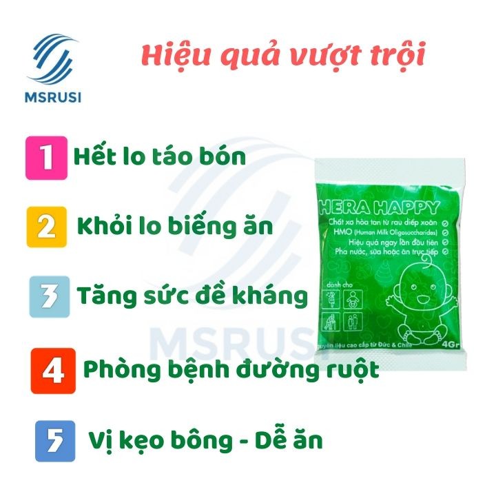 Chất xơ Hòa Tan Hera Happy [Hộp 15 gói 4g/gói] - HERA MILK - Hỗ trợ Táo Bón cho trẻ từ 6 tháng - Mẹ mang thai và Cho con Bú - MSRUSI