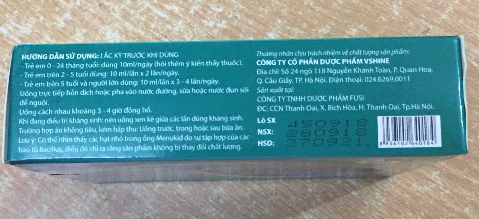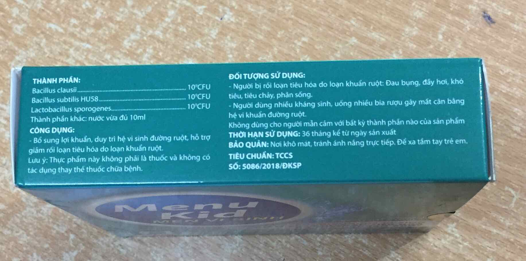 Thành phần : gồm 3 men vi sinh( bacillus clausii, bacillus subtilis, lactobacillus sporogenes)