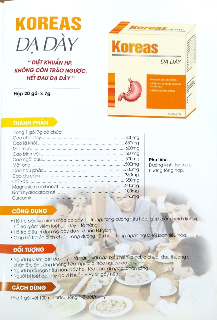 Koras dạ dày - giúp tăng cường chức năng tiêu hóa, giảm viêm loét dạ dày - tá tràng, hộp 20 gói