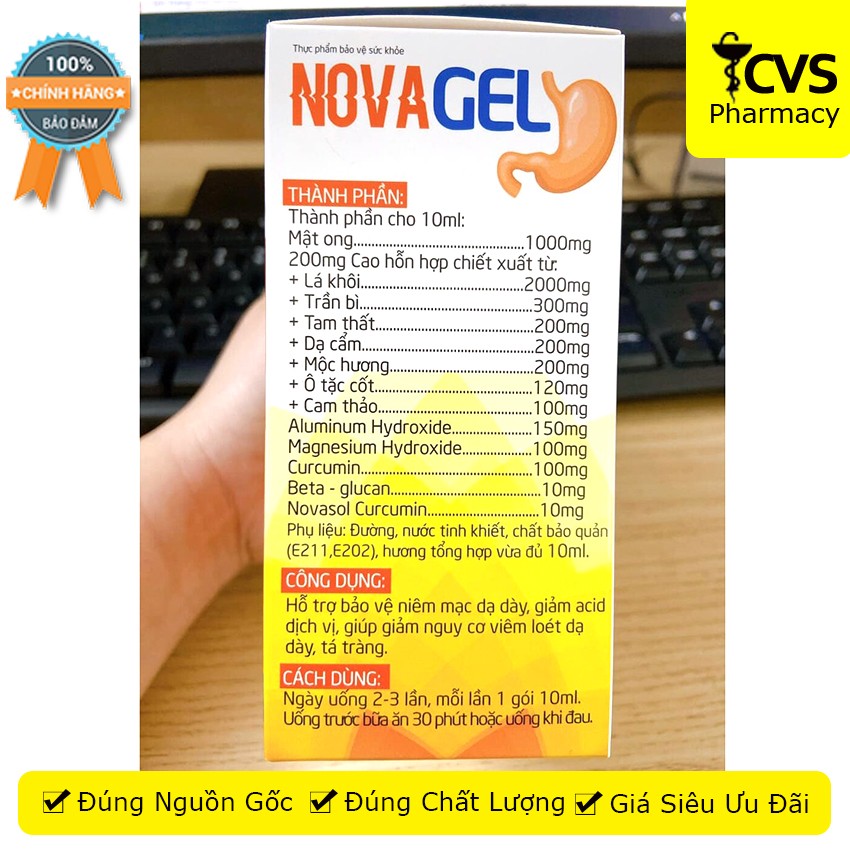 Sản phẩm Novagel sử dụng công nghệ Novasol Curcumin nhập khẩu từ Đức giúp hỗ trợ giảm acid dịch vị – Hỗ trợ giả 98.000đ