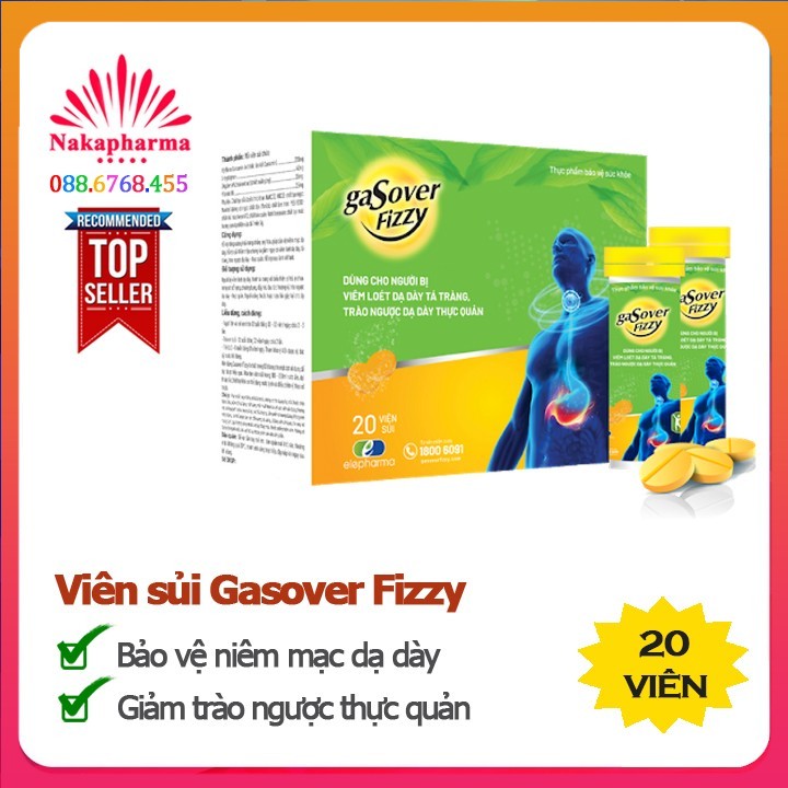 ❤ VIÊN SỦI GASOVER FIZZY - GIÚP BẢO VỆ NIÊM MẠC DẠ DÀY, GIẢM TRÀO NGƯỢC THỰC QUẢN, MAU LÀNH VẾT LOÉT, HẾT Ợ CHUA, �� 340.000đ