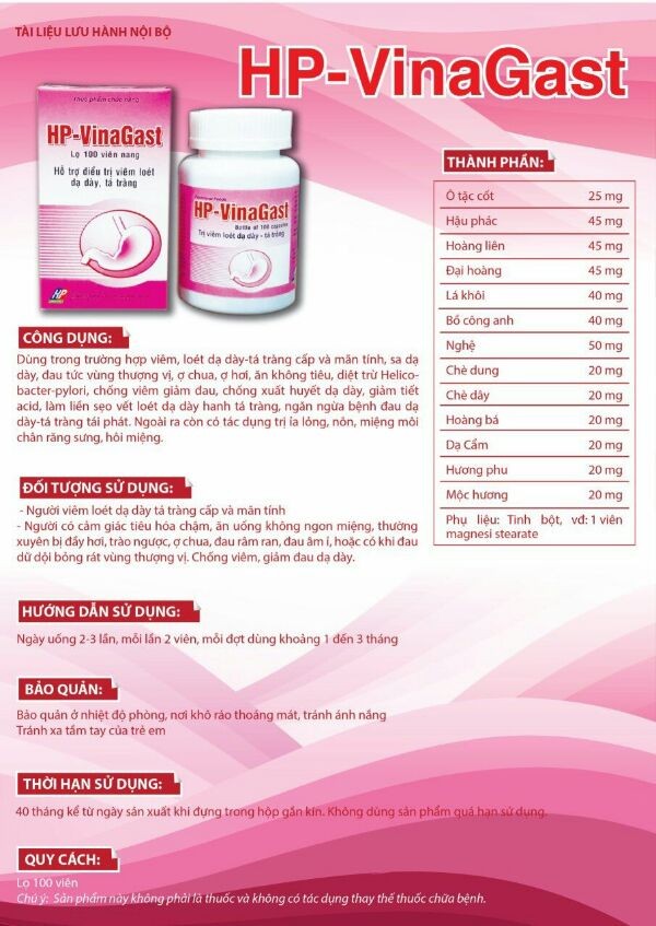 HP-VINAGAST HỖ TRỢ ĐIỀU TRỊ VIÊM LOÉT DẠ DÀY, TÁ TRÀNG