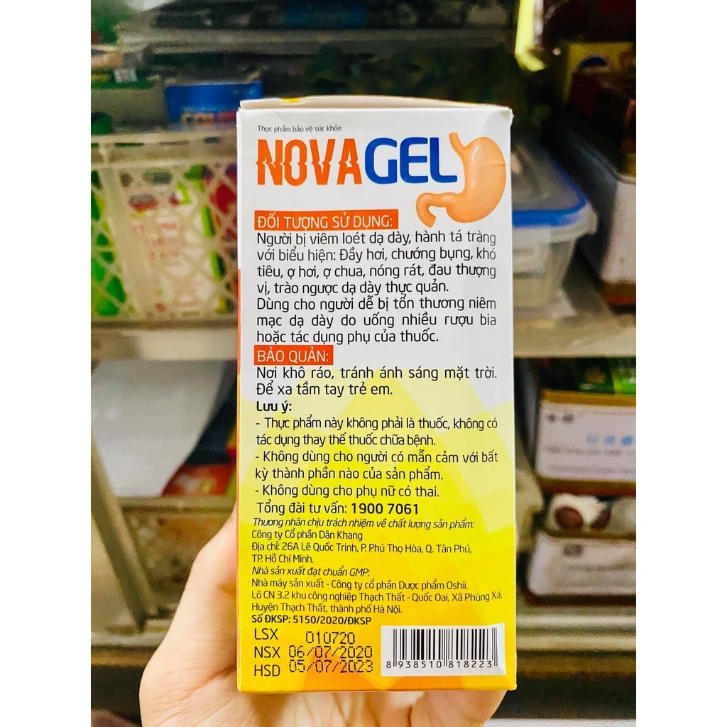 Novagel hỗ trợ giảm đau dạ dày bảo vệ niêm mạc dạ dày Nova gel Hộp 20 gói - Coastlinecare pharmacy