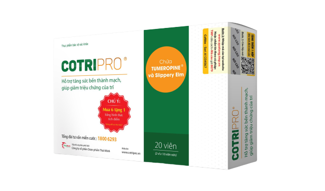 Viên uống Cotripro được bổ sung thêm thành phần Slippery Elm được nhập khẩu từ Hoa Kỳ và Tumreron Pine, tác động sâu vào bên trong, làm tăng sức bền thành mạch, co búi trĩ và ngăn ngừa tái phát.
