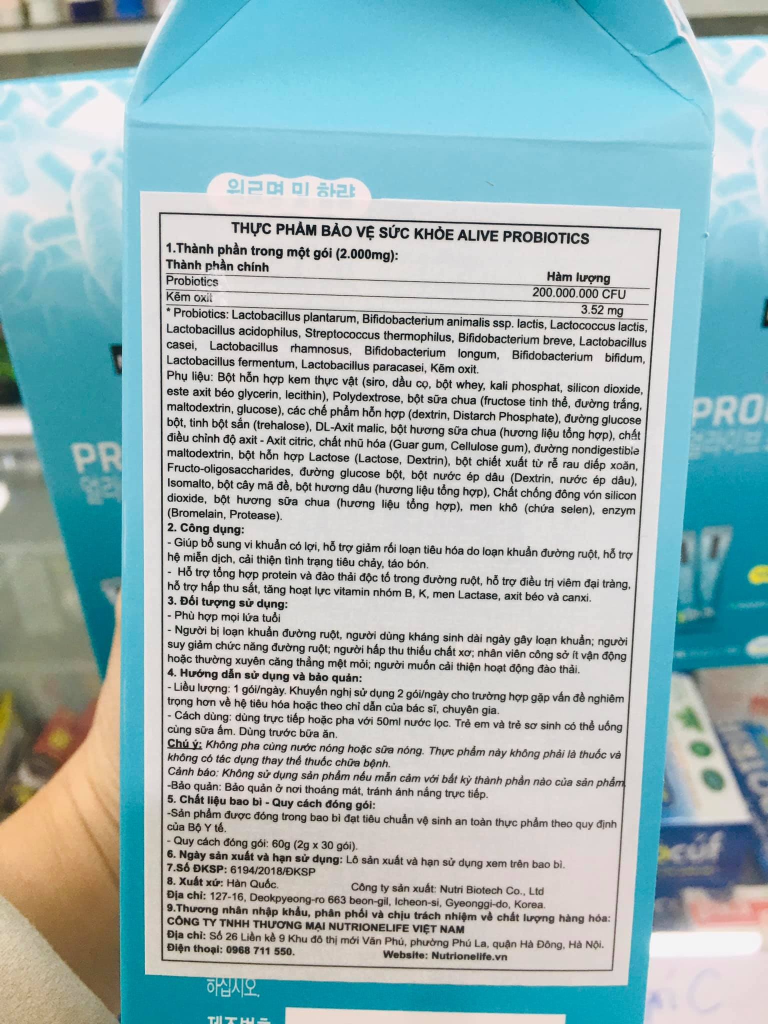 Men Vi Sinh ALIVE PROBIOTICS - Giúp Bổ Sung Lợi Khuẩn ( hộp 30 gói ) - Nhathuocgiahan