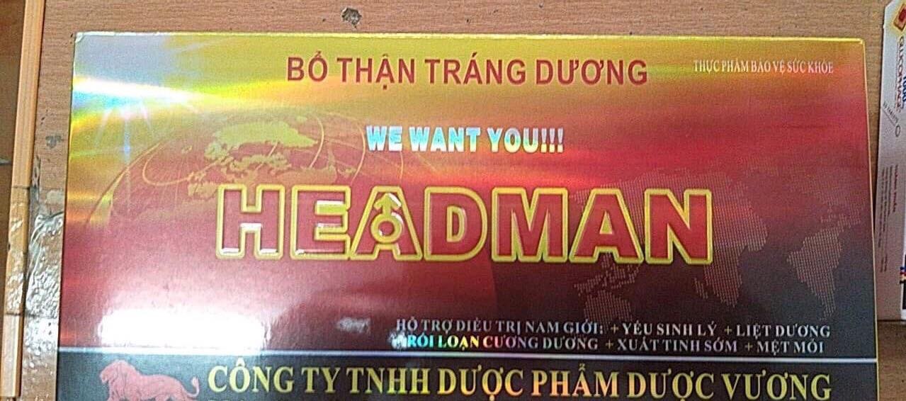 BỔ THẬN TRÁNG DƯƠNG HEADMAN Thận là bộ phận của hệ tiết niệu, là bộ lọc máu của cơ thể, giúp loại bỏ các chất thải, độc tố qua đường bài tiết. Chức năng của thận suy giảm do rất nhiều nguyên nhân như đái tháo đường, huyết áp cao gây tiểu đạm, dùng loại thuốc có hại cho thận. Sản phẩm bổ thận tráng dương Headman giúp bổ thận, tăng cường chức năng thận. Không chỉ có vậy, Headman còn là lựa chọn hàng đầu giúp hạn chế và làm chậm quá trình mãn dục ở nam giới, cải thiện chức năng sinh lý nam.THÀNH PHẦNBổ thận tráng dương Headman được chiết xuất từ thảo dược: Cao Nhân Sâm, Cao Dâm Dương Hoắc, Cao Ba Kích, Đông Trùng Hạ Thảo, Cá Ngựa, Cao Nhục Thung Dung, Cao Đương Quy, Cao Hoàng Kỳ....CÔNG DỤNG CỦA THỰC PHẨM CHỨC NĂNG HEADMANBổ thận tráng dương, mạnh gân cốt, tăng cường chức năng thận.Hạn chế và làm chậm quá trình mãn dục nam: đau lưng, mỏi lưng gối, cải thiện chức năng si.nh .ý nam. ĐỐI TƯỢNG SỬ DỤNG BỔ THẬN HEADMANBổ thận tráng dương Headman dành cho nam giới mệt mỏi, đau lưng mỏi gối, ù tai, tiểu đêm nhiều lần, sinh lý yếu, hoặc đang trong thời kỳ mãn dục. HƯỚNG DẪN SỬ DỤNGCách 3 ngày uống 1 lần, mỗi lần uống 2 viên. Uống trước khi đi ngủ hoặc trước khi quan hệ tình dục 1 giờ.Lưu ý: Sản phẩm không phải là thuốc và không có tác dụng thay thế thuốc chữa bệnh.QUY CÁCH ĐÓNG GÓIMỗi hộp bổ thận tráng dương headman nhỏ gồm 400mg x 4 viên nang.Quý khách có thể mua hộp lớn để tiết kiệm hơn, mỗi hộp lớn chứa 12 hộp nhỏ. Bổ thận tráng dương headman hộp lớn.HẠN SỬ DỤNG VÀ BẢO QUẢNNgày sản xuất và hạn sử dụng: xem trên nhãn sản phẩm.Bảo quản: nơi khô ráo, tránh ánh nắng trực tiếp.