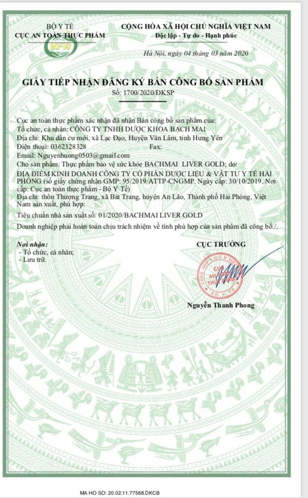 CÔNG TY TNHH DƯỢC KHOA BẠCH MAI chịu trách nhiệm sản phẩm