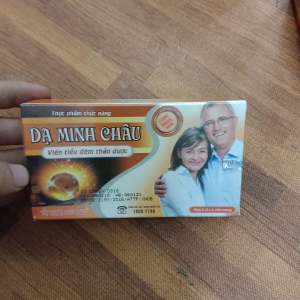 CHI TIẾT SẢN PHẨM1. Thành phần Viên Tiểu Đêm Thảo Dược Dạ Minh Châu Ích trí nhân.............................................................................0,83g Tiểu hồi hương......................................................................0,83g Xà sàng tử...............................................................................0,83g Cao đạu tương lên men ( Nattokinase)..............................0,17g Phụ liệu.......................................................................vừa đủ 1 viên 2. Công dụng Viên Tiểu Đêm Thảo Dược Dạ Minh Châu - Giúp ổn định thận dương, hỗ trợ và điều trị đau mỏi lưng, tiểu đêm nhiều lần - Giúp cải thiện tuần hoàn - Phòng ngừa và làm giảm cục máu đông trong lòng mạch máu. 3. Đối tượng sử dụng Viên Tiểu Đêm Thảo Dược Dạ Minh Châu - Dùng cho người tiểu tiện không tự chủ, tiểu đục, tiểu đêm nhiều lần hoặc đi tiểu nhiều lần vào ban ngày, đặc biệt là người già sức khỏe toàn thân suy giảm. - Người rối loạn tiền đình - Người có bệnh lý huyết khối (người đái tháo đường, người tăng huyết áp) 4. Cách dùng Viên Tiểu Đêm Thảo Dược Dạ Minh Châu - Uống trước bữa ăn 1 giờ hoặc sau bữa ăn 2 giờ - Hỗ trợ điều trị: Ngày uống 3 lần, mỗi lần 1 viên - Duy trì tác dụng: Ngày uống 2 lần, mỗi lần 1 viên 5. Lưu ý: Không dùng cho phụ nữ mang thai, phụ nữ đang trong thời kỳ kinh nguyệt, người đang chảy máu cấp tính, người rối loạn đông máu. 6. Bảo quản: Nơi khô ráo 7. Quy cách đóng gói: Hộp 2 vỉ x 6 viên nang 8. SĐK: 7545/2015/ATTP- XNCB 9. Sản xuất tại: Công ty CP Sao Thái Dương Sản phẩm này là thực phẩm chức năng, không phải thuốc, không có tác dụng thay thế thuốc chữa bệnh. Đọc kỹ hướng dẫnliên hệ 0978316610
