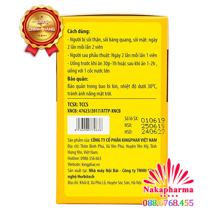 ❤ BÀI THẠCH KINGPHAR – GIÚP BÀO MÒN SỎI THẬN, NGĂN NGỪA TÁI PHÁT, GIÚP LỢI TIỂU, BÀI TIẾT CẶN BÃ TRONG ỐNG TIỂU �