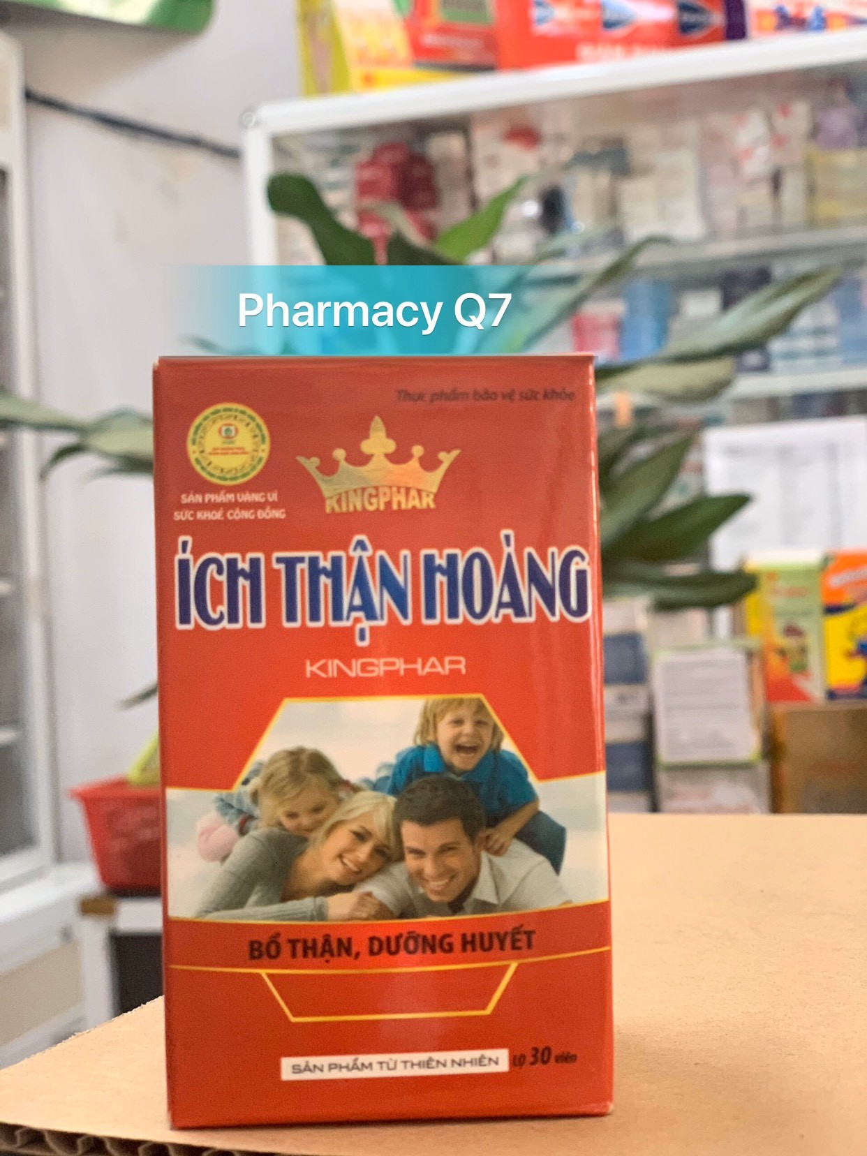 ÍCH THẬN HOÀNG KINGPHAR là sự kết hợp của 28 loại dược liệu quý như: sâm mỹ, Nhục thung dung, dâm dương hoắc, trầm hương, đương quy, đỗ trọng, hoàng kỳ, phúc bồn tử, sà xàng tử, … có tác dụng bồi bổ sức khỏe, phục hồi và tăng cường chức năng của thận, dùng rất tốt cho người có chức năng thận suy giảm, người suy thận đang chạy thận nhân tạo, người yếu sinh lý…. Công dụng:Bổ thận ích khí, dưỡng huyết. Dùng cho do thận hư yếu, thận suy, khí huyết hư tổn dẫn đến: chóng mặt hay quên, tinh thần uể oải, chóng mặt ù tai, mất ngủ hay quên, mờ mắt ù tai, lưng gối mỏi đau, mệt mỏi thích nằm, cơ thể suy nhược , tiểu nhiều lần, tiểu dắt.Đối tượng sử dụng: Dùng trong các trường hợp:Dùng cho do thận hư yếu, thận suy, khí huyết hư tổn dẫn đến: chóng mặt hay quên, tinh thần uể oải, chóng mặt ù tai, mất ngủ hay quên, mờ mắt ù tai, lưng gối mỏi đau, mệt mỏi thích nằm, cơ thể suy nhược , tiểu nhiều lần, tiểu dắt.Hướng dẫn sử dụng:- Ngày 2-3 lần, mỗi lần 1gam (khoảng 20 hoàn)- Uống sau ăn khoảng 1-2 giờ. Nên sử dụng 1 đợt khoảng 3 tháng để có hiệu quả tốt nhất