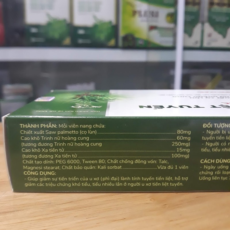 Chiết xuất cọ lùn, trinh nữ hoàng cung. Hỗ trợ giảm tiến triển u xơ lành tính tuyến tiền liệt, giảm triệu chứng khó tiểu, tiểu són, tiểu nhiều lần.