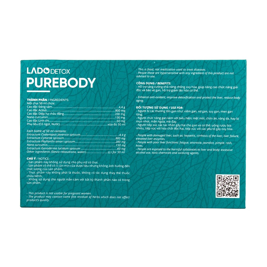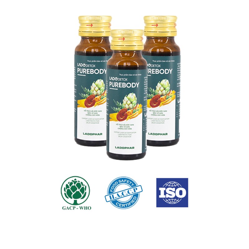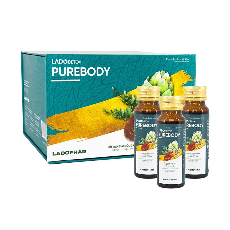 Nước uống Purebody Ladophar thanh lọc cơ thể - Hộp 12 Lọ 50ml