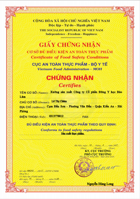 Cách dùng:Dùng thường xuyên, mỗi ngày 1-2 viênUống trước bữa ăn, ngày 2 lầnĐợt dùng từ 4 – 6 tuầnTác dụng tức thì dùng 4 – 6 viên trước khi sinh hoạt khoảng 60 phút. Giá hấp dẫn 350.000 đồng/ hộp/ 30g/1 hộp 60 viên nang x 500mg/viên.Sản xuất bởi: Công ty cổ phần Đông Y Học Bảo Lâm