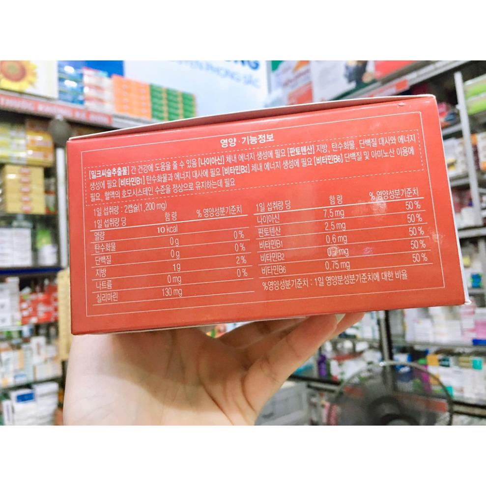 1. Thành phần: Trong 1 viên nang mềm 800mg chứa: Chiết xuất cây kế sữa (silymarin 50%), Men khô (selenium 0,1%), Da-tocopherol (vitamin E 67%), Lactobacillus bulgaricus (vitamin B2 15%), Lactobacillus bulgaricus (vitamin B1 20%), Dầu đậu tương, Sáp ong trắng, Đậu nành lecithin,Chiết xuất bột tỏi đen, Chiết xuất bột bồ công anh, Bột chiết xuất trái cây sơn thù du, Chiết xuất bột nghệ, Bột chiết xuất từ trái cây nho khô phương đông, Thiết xuất cây rễ vàng, Bột thảo mộc chiết xuất từ nấm linh chi, Chiết xuất bột nấm chaga.Phụ liệu: Tinh bột Hydroxypropyl, Glycerin, Carrageenan, Polyglycitol, Cacao 2. Công dụng: Hỗ trợ bảo vệ tế bào gan, giúp tăng cường chức năng gan.3. Đối tượng sử dụng: Người bị viêm gan, xơ gan, men gan cao, người bị suy giảm chức năng gan với các triệu chứng vàng da, mẩn ngứa, nổi mề đay, ăn không tiêu, táo bón, nước tiểu vàng...4. Cách dùng: Uống 1 viên/lần x 1 lần/ngày.Kết hợp uống nhiều nước trong ngày để tăng khả năng thải độc5. Quy cách:Hộp nhỏ: 60 viên x 600mg/viênHộp lớn: 180 viên ( 3 hộp 60 viên )6. Bảo quản: Bảo quản nơi khô ráo, thoáng mát, tránh ánh nắng trực tiếp, Để xa tầm tay trẻ em.7. Hạn sử dụng:36 tháng kể từ ngày sản xuất8. Xuất xứ: Hàn QuốcNhà sản xuất: MEDI BIOLAB.,Co.,Ltd. KOREAĐơn vị nhập khẩu: Công ty CP Doanh Nghiệp Thành AnĐơn vị phân phối: Công ty CP Dược phẩm SK PHARMA6. Số TNĐKSP:7172/2018/ĐKSPLƯU Ý:+Thực phẩm này không phải là thuốc, không có tác dụng thay thế thuốc chữa bệnh.+Không sử dụng nếu dị ứng với bất kỳ thành phần nào của sản phẩm;+Phải dùng với thật nhiều nước để tránh kẹt trong cổ họng;+Ngưng sử dụng nếu bị rối loạn dạ dày, khó tiêu;+Đọc kỹ hướng dẫn sử dụng trước khi dùng#viemgan#mengancao#silymarin#arginin#liverchion