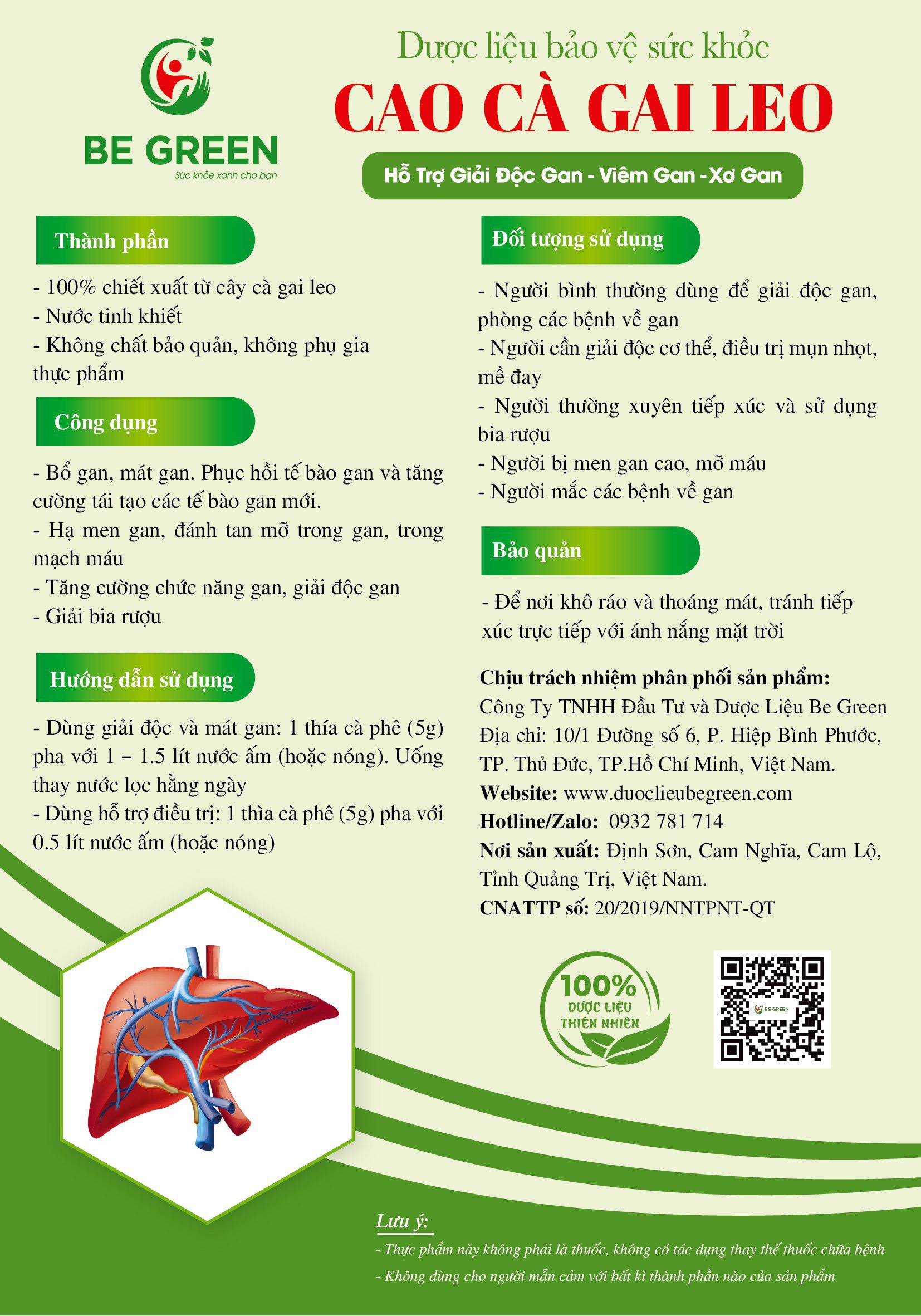 CAO CÀ GAI LEO BE GREEN- Hàng việt nam - Nguyên Chất Không phụ gia chất bảo quản- Giải Độc Gan, Làm Mát Gan, Hạ Men Gan, Hỗ Trợ Chức Năng Gan - 100G