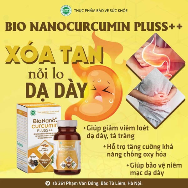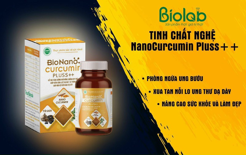 Bio Nanocurcumin pluss++THÀNH PHẦN BIO NANOCURCUMIN PLUSS++Nanocurcumin (20%) 400mgActiso (Cynara scolymus L) 50mgCao linh chi (Ganoderma lucidum)