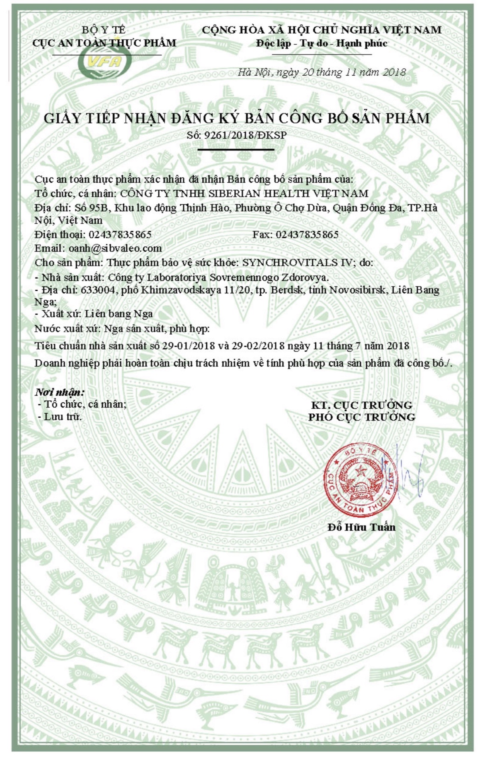+ Nhập khẩu và phân phối : Công ty TNHH Siberian Health Việt Nam