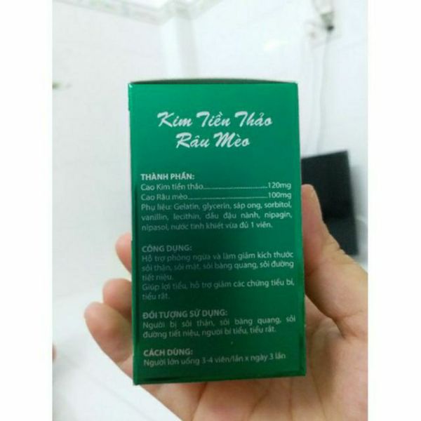 THÀNH PHẦN: Cao kim tiền thảo Cao râu mèo CÔNG DỤNG:Hỗ trợ phòng ngừa và làm giảm kích thước sỏi thận, sỏi mật, sỏi bàng quang, sỏi đường tiết niệu.Giúp lợi tiểu, hỗ trợ giảm các chứng tiểu bí, tiểu gắt.ĐỐI TƯỢNG SỬ DỤNG:Người bị sỏi thận , sỏi bàng quang, sỏi đường tiết niệu, người bí tiểu, tiểu gắt.CÁCH DÙNG: Người lớn 3-4v/lần x 3 lần ngày.Số :HSD: 062022Nsx: