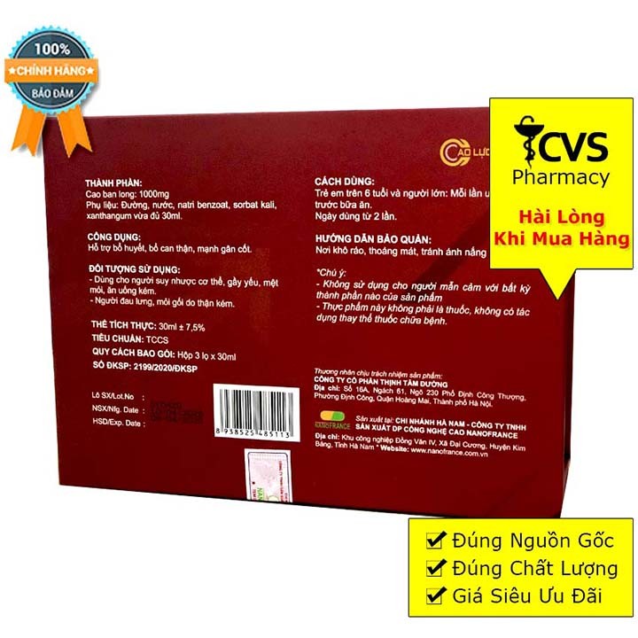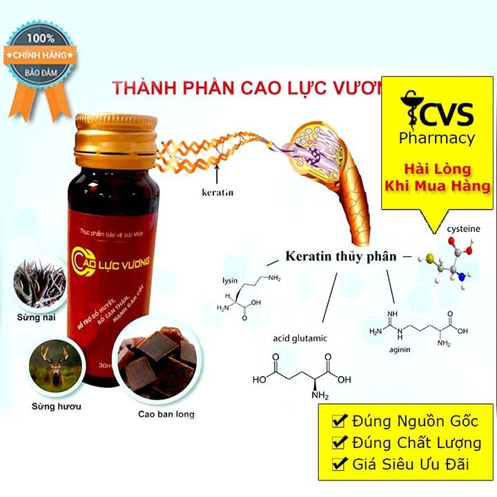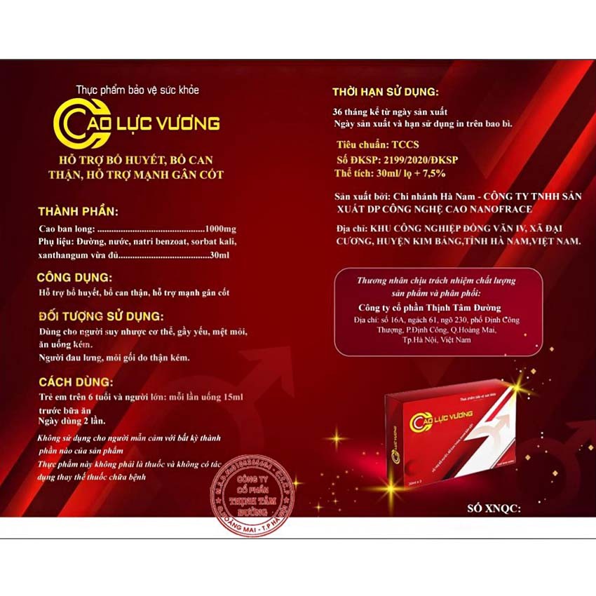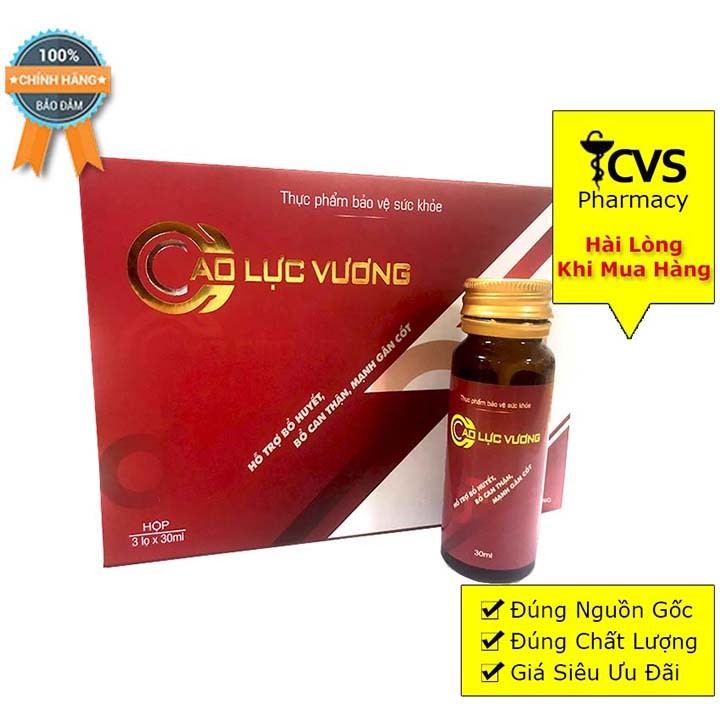 Cao Lực Vương - Bổ Thận, Bổ Huyết, Mạnh Gân CốtQuy cách:Hộp có 3 lọ x 30mlThành phần:Cao ban long: 1000mgPhụ liệu: Đư�