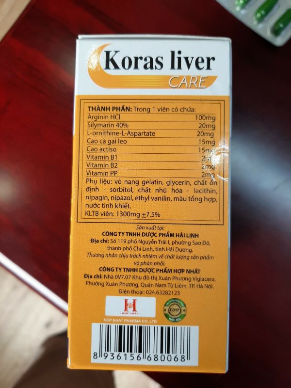 Chi tiết thành phần có trong ảnh THÀNH PHẦN:Arginine hydroclorid..........................................Cardus marianus..........................................................Thuymomodulin..........................................................Diệp hạ châu.............................................................. g.................................................................... Cà gai leo................................................................... Bột tỏi.......................................................................... Vitamin B1 ...................................................................Vitamin B6 ...................................................................Vitamin PP..................................................................Phụ liệu: dầu đậu nành, sorbitol, sáp ong trắng, nipazin, nipasol, vanilline, gelatin CÔNG DỤNG:Giúp tăng cường chức năng gan trong các trường hợp: xơ gan, gan nhiễm mỡ, rối loạn chức năng gan, men gan cao, viêm gan cấp và mãn tính ĐỐI TƯỢNG SỬ DỤNG:Người bị rối loạn chức năng gan gây mệt mỏi, chán ăn, vàng da, bí tiểu tiện, táo bón, nước tiểu vàng, người có men gan tăng cao trong xơ gan, viêm gan cấp và mãn tính.Người uống nhiều rươu bia, ngộ độc thực phẩm, hóa chất, người dùng thuốc có hại cho gan dài ngày (thuốc kháng sinh, chống lao, tiểu đường) CÁCH DÙNG:Người lớn uống 1 viên/lần x 2 - 3 lần/ngàyNhà sản xuất: CÔNG TY CỔ PHẦN tnhh hợp nhất