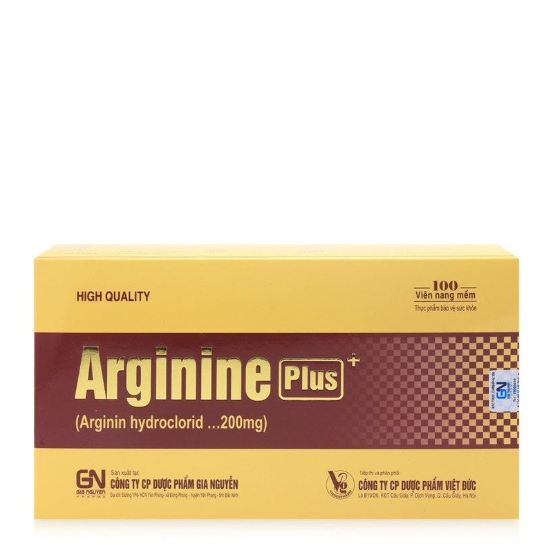 Thành phần | - Arginine …………………………………….200mg - Vitamin B1…………………………………..1,4mg - Vitamin B6…………………………………..2 mg - Vitamin B2…………………………………..1,4mg - Vitamin PP……………………………….….5mg - Vitamin B5……………………….………….5mg - Gelatin, dầu đậu nành, lecithin, glycerin vđ…1 viên |