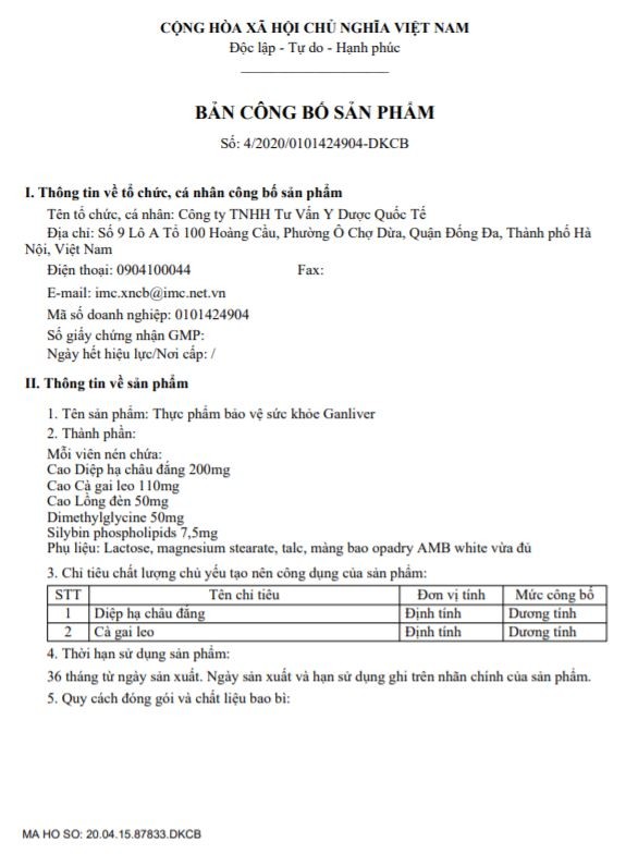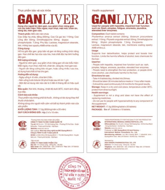 GanLiver - Hỗ trợ giải độc gan, giúp bảo vệ gan, tăng cường chức năng ganQuy cách: Hộp 2 vỉ x 10 viênThành phần:- Cao di 110.000đ